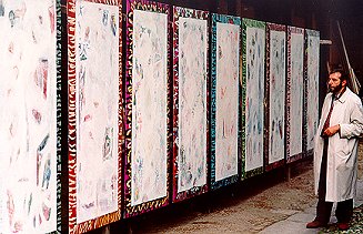 Il seppellimento è avvenuto in una buca poco profonda, un grande triangolo di cinque metri di base e nove di altezza. L'azione ha raccolto un discreto numero di amici e di artisti che spontaneamente si sono affaccendati alle pale nel lavoro di ricopertura. Ben presti i quadri, posati a faccia in giù, sono stati coperti, mentre la grande onda di sabbia, preparata sul bordo della fossa, si è appianata come un mare che torna calmo..."