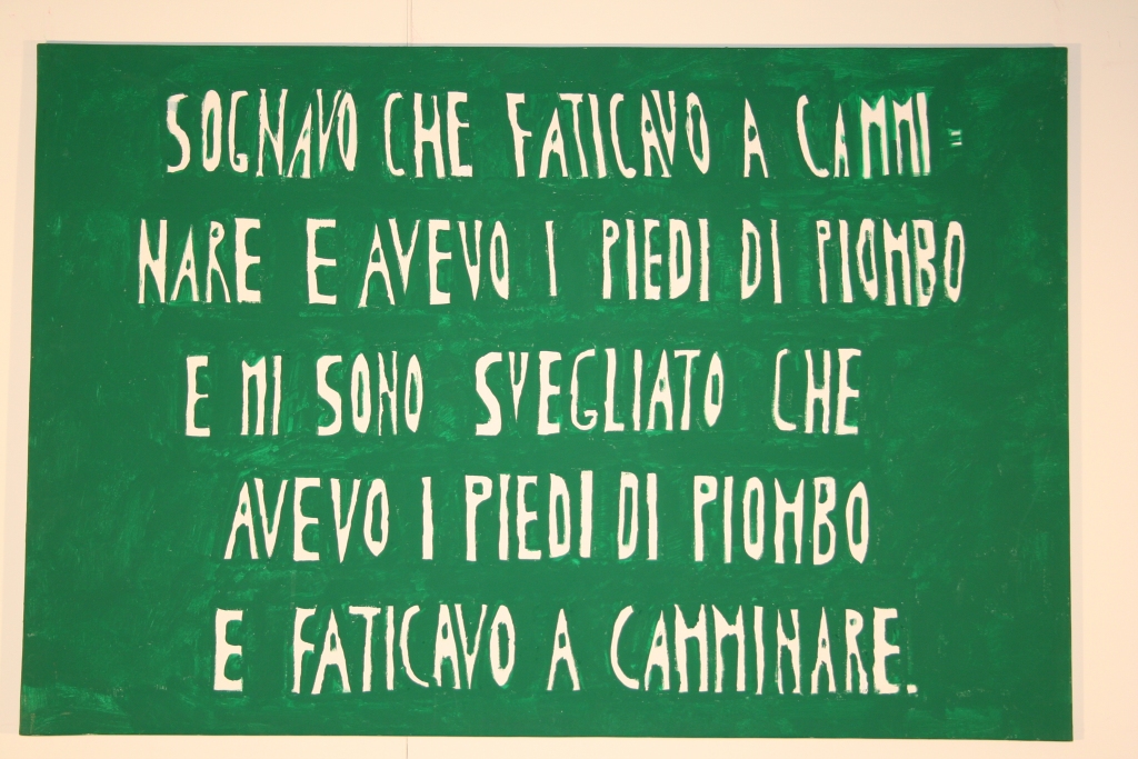 Particoalre importanza assume il testo in questi dieci quadri. Si tratta di poesie intense e suggestive che vengono tradotte in pittura in modo estremamente povero ed essenziale. Tutto si fonda sul significato delle parole, che si offrono alla meditazione dell’osservatore inducendolo a fermarsi.